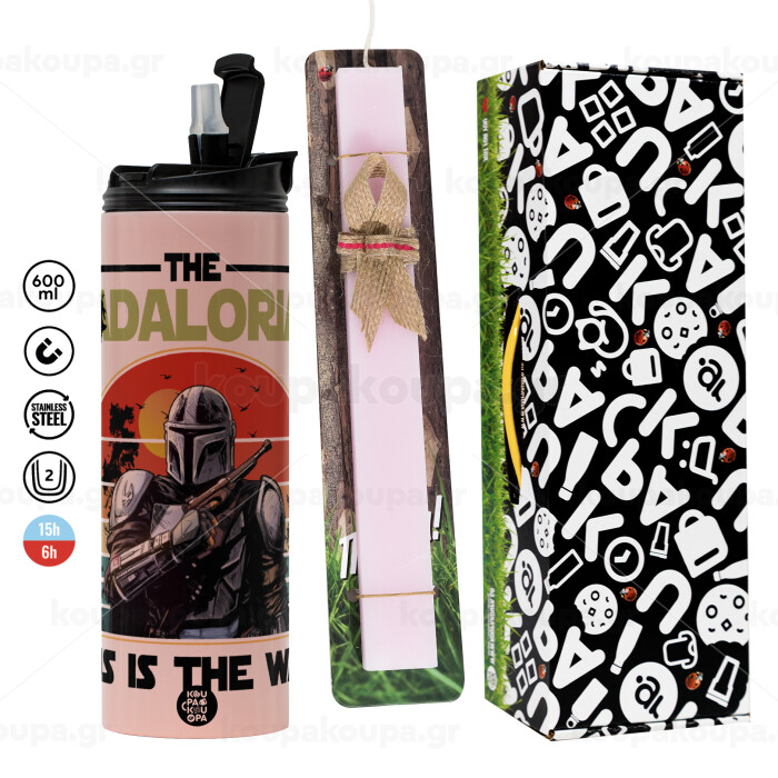 The Dadalorian, Πασχαλινή Λαμπάδα με ΡΟΖ Travel Tumbler θερμό (600ml, BPA free) & κερί αρωματικό πλακέ (30cm) (ΡΟΖ)