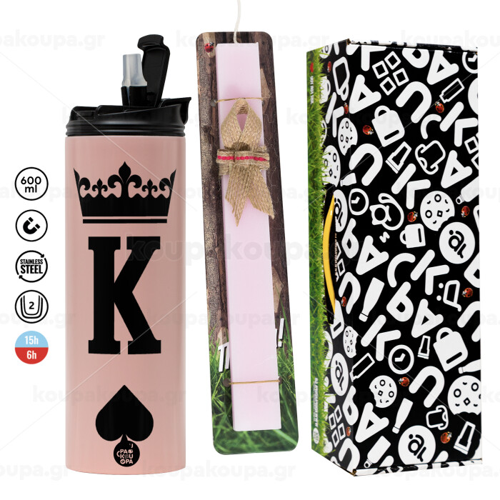 King, Πασχαλινή Λαμπάδα με ΡΟΖ Travel Tumbler θερμό (600ml, BPA free) & κερί αρωματικό πλακέ (30cm) (ΡΟΖ)