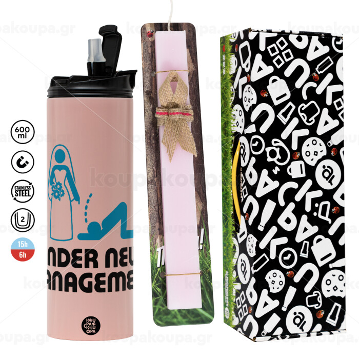 Under new Management, Πασχαλινή Λαμπάδα με ΡΟΖ Travel Tumbler θερμό (600ml, BPA free) & κερί αρωματικό πλακέ (30cm) (ΡΟΖ)