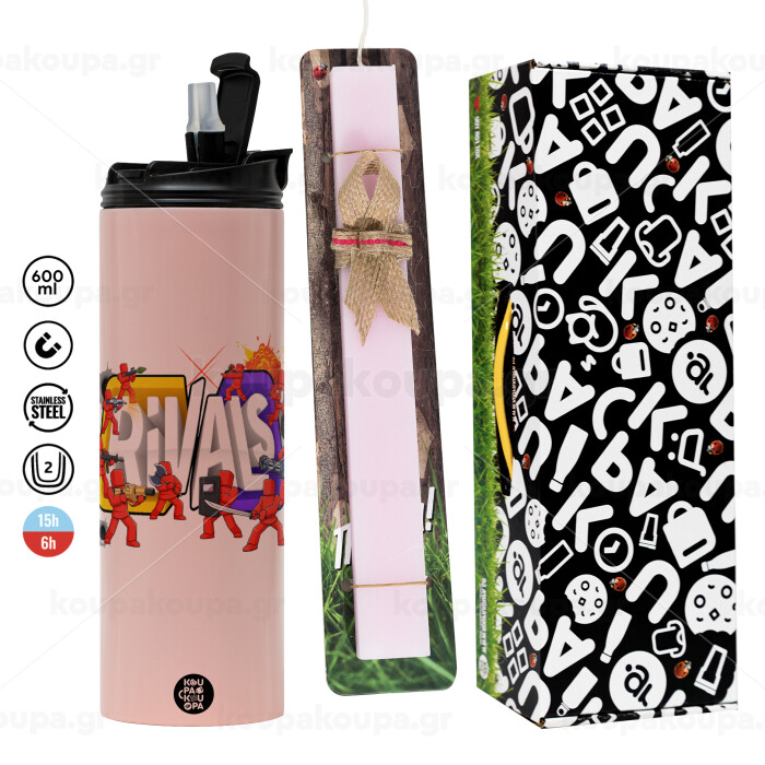 Roblox Rivals, Πασχαλινή Λαμπάδα με ΡΟΖ Travel Tumbler θερμό (600ml, BPA free) & κερί αρωματικό πλακέ (30cm) (ΡΟΖ)