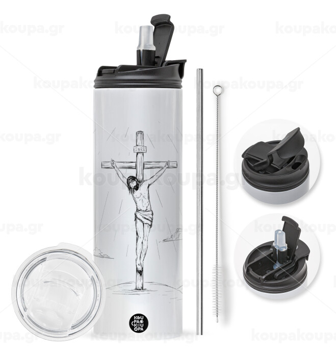 με 2 καπάκια για να επιλέξετε ανάμεσα σε απλό ποτήρι με καλαμάκι ή μετατροπή σε παγούρι θερμό με 2 τρόπους χρήσης (καλαμάκι ή στόμιο) με μεταλλικό επαναχρησιμοποιούμενο καλαμάκι. Απολαύστε το αγαπημένο σας ρόφημα κάθε στιγμή στο μοναδικό αυτό οικολογικό θερμό. Διατηρεί τη θερμοκρασία για αρκετές ώρες και είναι κατασκευασμένο από ανοξείδωτο ατσάλι. Κατάλληλο για ζεστά και κρύα ροφήματα. Συνοδεύεται από βουρτσάκι καθαρισμού για το καλαμάκι.