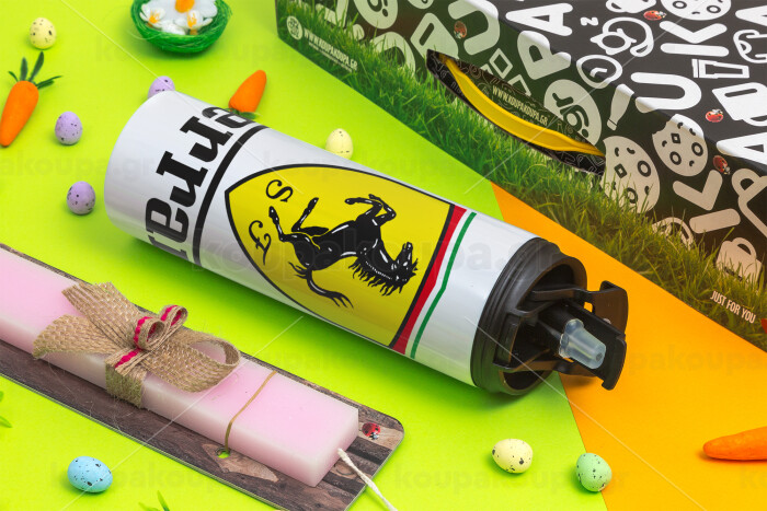 Ferrari S.p.A., Πασχαλινή Λαμπάδα με Travel Tumbler θερμό με διπλό καπάκι (600ml, BPA free) & κερί αρωματικό πλακέ (30cm) (ΡΟΖ)