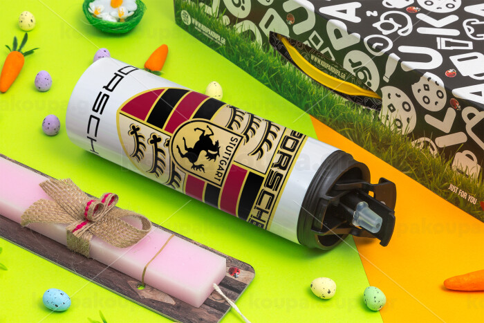 Porsche, Πασχαλινή Λαμπάδα με Travel Tumbler θερμό με διπλό καπάκι (600ml, BPA free) & κερί αρωματικό πλακέ (30cm) (ΡΟΖ)