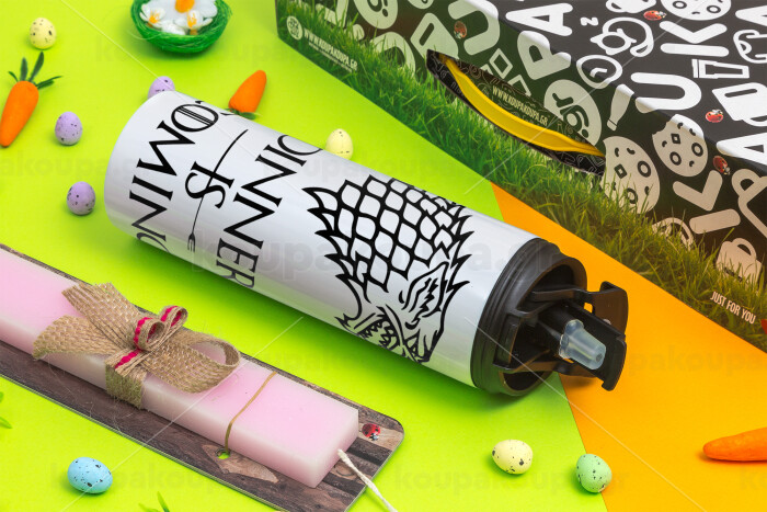 Dinner is coming (GOT), Πασχαλινή Λαμπάδα με Travel Tumbler θερμό με διπλό καπάκι (600ml, BPA free) & κερί αρωματικό πλακέ (30cm) (ΡΟΖ)