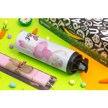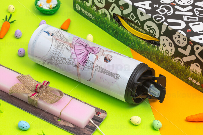 Ballerina in Paris, Πασχαλινή Λαμπάδα με Travel Tumbler θερμό με διπλό καπάκι (600ml, BPA free) & κερί αρωματικό πλακέ (30cm) (ΡΟΖ)