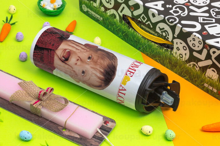 Μόνος στο σπίτι Kevin McCallister Shocked, Πασχαλινή Λαμπάδα με Travel Tumbler θερμό με διπλό καπάκι (600ml, BPA free) & κερί αρωματικό πλακέ (30cm) (ΡΟΖ)