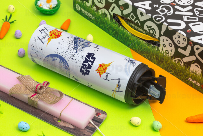 Ο πόλεμος των άστρων, Πασχαλινή Λαμπάδα με Travel Tumbler θερμό με διπλό καπάκι (600ml, BPA free) & κερί αρωματικό πλακέ (30cm) (ΡΟΖ)