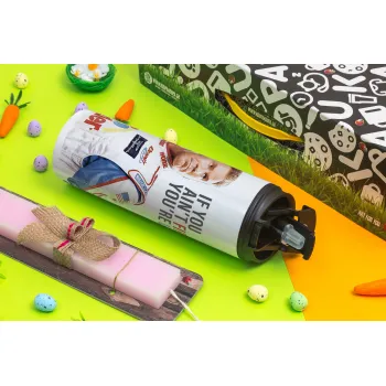 If You Ain't First You're Last Ricky Bobby, Talladega Nights, Πασχαλινή Λαμπάδα με Travel Tumbler θερμό με διπλό καπάκι (600ml, BPA free) & κερί αρωματικό πλακέ (30cm) (ΡΟΖ)
