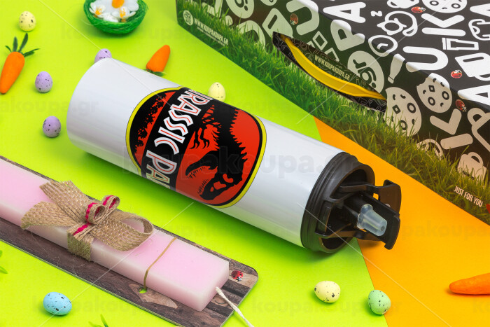 Jurassic park, Πασχαλινή Λαμπάδα με Travel Tumbler θερμό με διπλό καπάκι (600ml, BPA free) & κερί αρωματικό πλακέ (30cm) (ΡΟΖ)