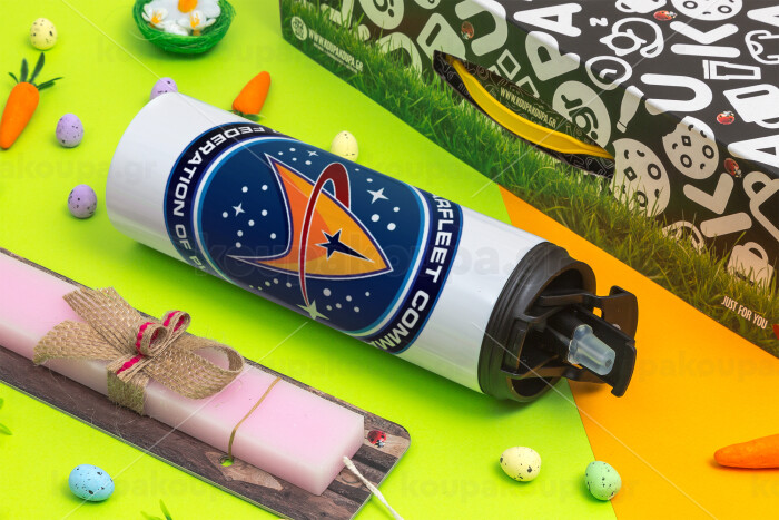 Starfleet command, Πασχαλινή Λαμπάδα με Travel Tumbler θερμό με διπλό καπάκι (600ml, BPA free) & κερί αρωματικό πλακέ (30cm) (ΡΟΖ)