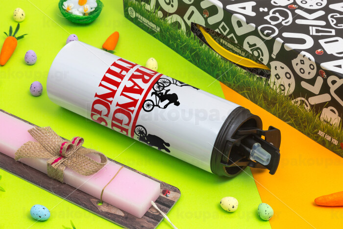 Stranger Things red, Πασχαλινή Λαμπάδα με Travel Tumbler θερμό με διπλό καπάκι (600ml, BPA free) & κερί αρωματικό πλακέ (30cm) (ΡΟΖ)
