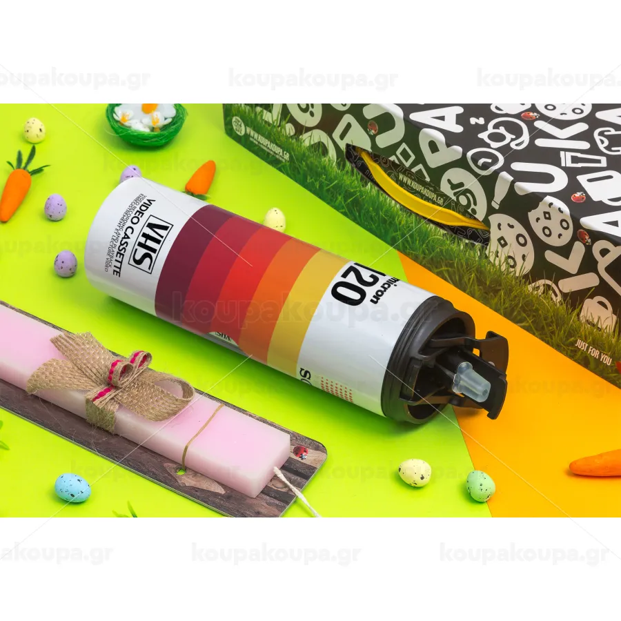 VHS sony dynamicron T-120, Πασχαλινή Λαμπάδα με Travel Tumbler θερμό με διπλό καπάκι (600ml, BPA free) & κερί αρωματικό πλακέ (30cm) (ΡΟΖ)