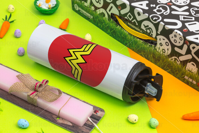 Wonder woman, Πασχαλινή Λαμπάδα με Travel Tumbler θερμό με διπλό καπάκι (600ml, BPA free) & κερί αρωματικό πλακέ (30cm) (ΡΟΖ)