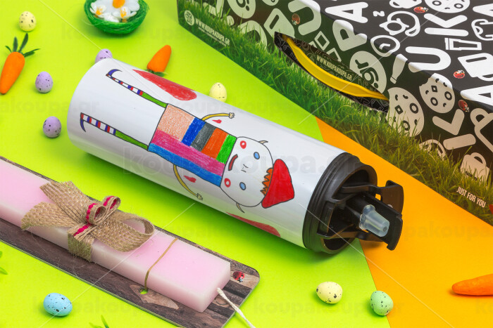 Ο Αλέξανδρος ζωγραφίζει την Αγάπη, Πασχαλινή Λαμπάδα με Travel Tumbler θερμό με διπλό καπάκι (600ml, BPA free) & κερί αρωματικό πλακέ (30cm) (ΡΟΖ)