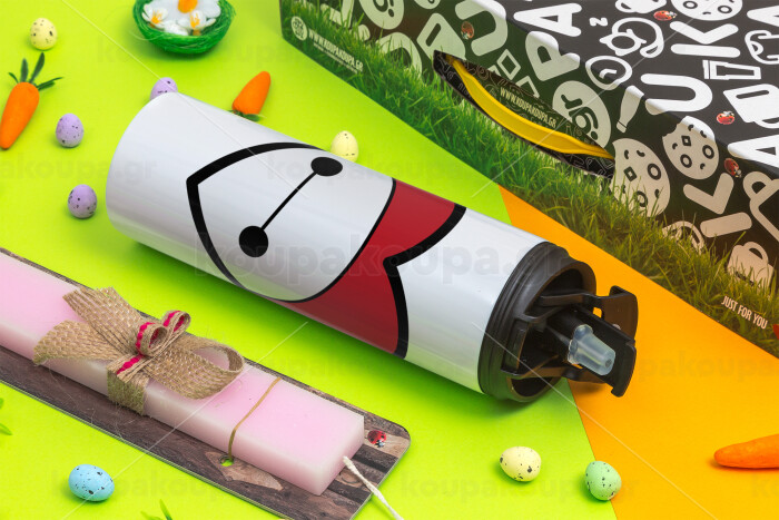 Baymax heart, Πασχαλινή Λαμπάδα με Travel Tumbler θερμό με διπλό καπάκι (600ml, BPA free) & κερί αρωματικό πλακέ (30cm) (ΡΟΖ)