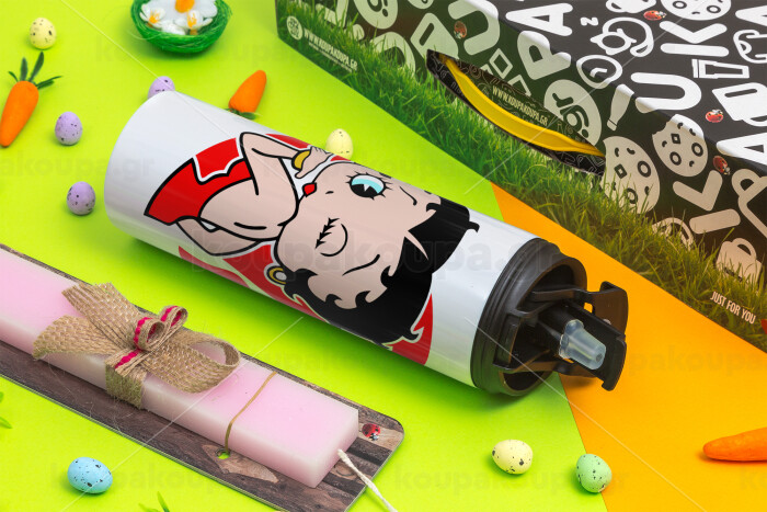 Betty Boop, Πασχαλινή Λαμπάδα με Travel Tumbler θερμό με διπλό καπάκι (600ml, BPA free) & κερί αρωματικό πλακέ (30cm) (ΡΟΖ)