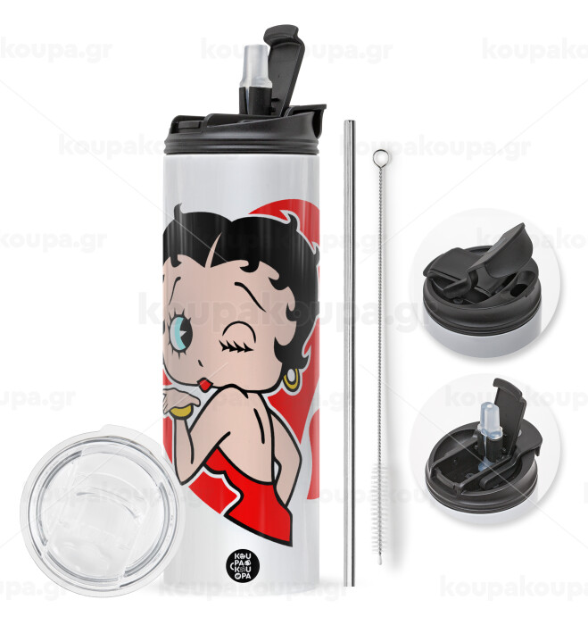 με 2 καπάκια για να επιλέξετε ανάμεσα σε απλό ποτήρι με καλαμάκι ή μετατροπή σε παγούρι θερμό με 2 τρόπους χρήσης (καλαμάκι ή στόμιο) με μεταλλικό επαναχρησιμοποιούμενο καλαμάκι. Απολαύστε το αγαπημένο σας ρόφημα κάθε στιγμή στο μοναδικό αυτό οικολογικό θερμό. Διατηρεί τη θερμοκρασία για αρκετές ώρες και είναι κατασκευασμένο από ανοξείδωτο ατσάλι. Κατάλληλο για ζεστά και κρύα ροφήματα. Συνοδεύεται από βουρτσάκι καθαρισμού για το καλαμάκι.