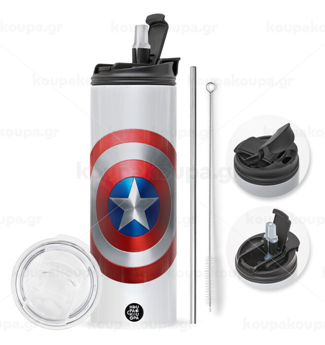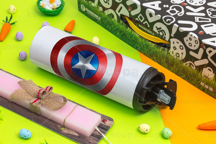 Captain America, Πασχαλινή Λαμπάδα με Travel Tumbler θερμό με διπλό καπάκι (600ml, BPA free) & κερί αρωματικό πλακέ (30cm) (ΡΟΖ)