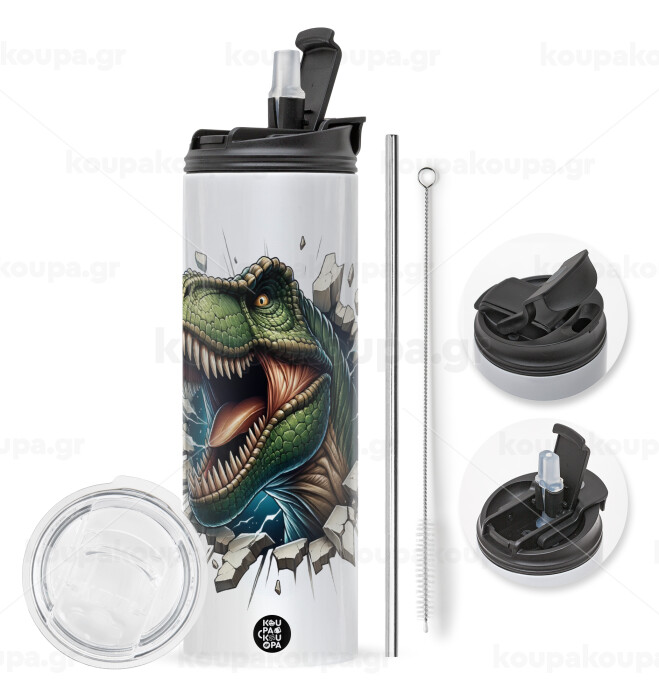 με 2 καπάκια για να επιλέξετε ανάμεσα σε απλό ποτήρι με καλαμάκι ή μετατροπή σε παγούρι θερμό με 2 τρόπους χρήσης (καλαμάκι ή στόμιο) με μεταλλικό επαναχρησιμοποιούμενο καλαμάκι. Απολαύστε το αγαπημένο σας ρόφημα κάθε στιγμή στο μοναδικό αυτό οικολογικό θερμό. Διατηρεί τη θερμοκρασία για αρκετές ώρες και είναι κατασκευασμένο από ανοξείδωτο ατσάλι. Κατάλληλο για ζεστά και κρύα ροφήματα. Συνοδεύεται από βουρτσάκι καθαρισμού για το καλαμάκι.