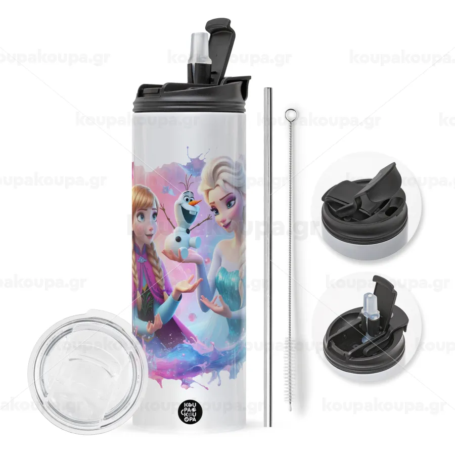 με 2 καπάκια για να επιλέξετε ανάμεσα σε απλό ποτήρι με καλαμάκι ή μετατροπή σε παγούρι θερμό με 2 τρόπους χρήσης (καλαμάκι ή στόμιο) με μεταλλικό επαναχρησιμοποιούμενο καλαμάκι. Απολαύστε το αγαπημένο σας ρόφημα κάθε στιγμή στο μοναδικό αυτό οικολογικό θερμό. Διατηρεί τη θερμοκρασία για αρκετές ώρες και είναι κατασκευασμένο από ανοξείδωτο ατσάλι. Κατάλληλο για ζεστά και κρύα ροφήματα. Συνοδεύεται από βουρτσάκι καθαρισμού για το καλαμάκι.
