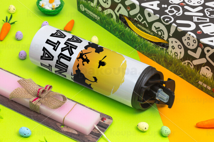 Hakuna Matata, Πασχαλινή Λαμπάδα με Travel Tumbler θερμό με διπλό καπάκι (600ml, BPA free) & κερί αρωματικό πλακέ (30cm) (ΡΟΖ)