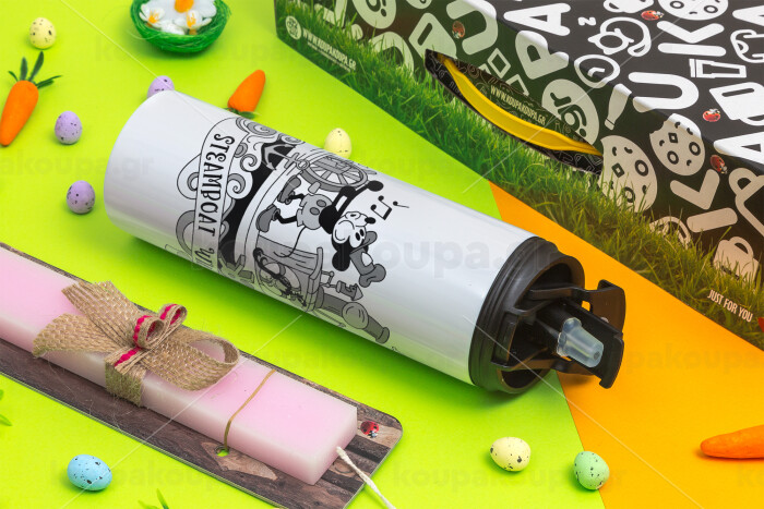 Mickey steamboat, Πασχαλινή Λαμπάδα με Travel Tumbler θερμό με διπλό καπάκι (600ml, BPA free) & κερί αρωματικό πλακέ (30cm) (ΡΟΖ)