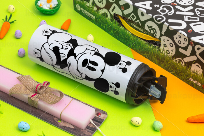Mickey, Πασχαλινή Λαμπάδα με Travel Tumbler θερμό με διπλό καπάκι (600ml, BPA free) & κερί αρωματικό πλακέ (30cm) (ΡΟΖ)
