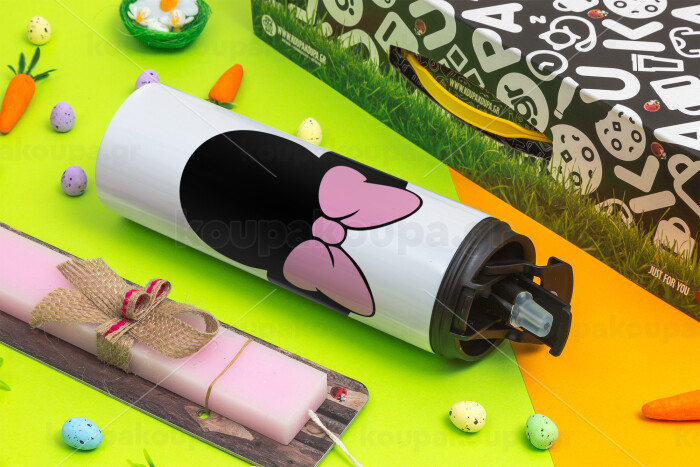 mouse girl, Πασχαλινή Λαμπάδα με Travel Tumbler θερμό με διπλό καπάκι (600ml, BPA free) & κερί αρωματικό πλακέ (30cm) (ΡΟΖ)