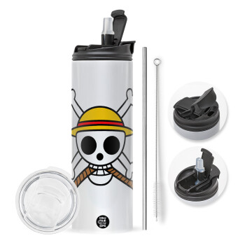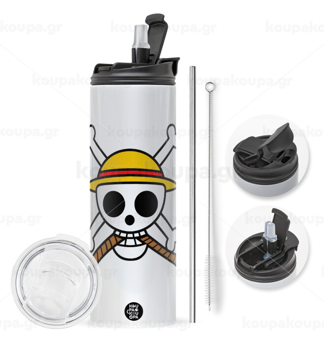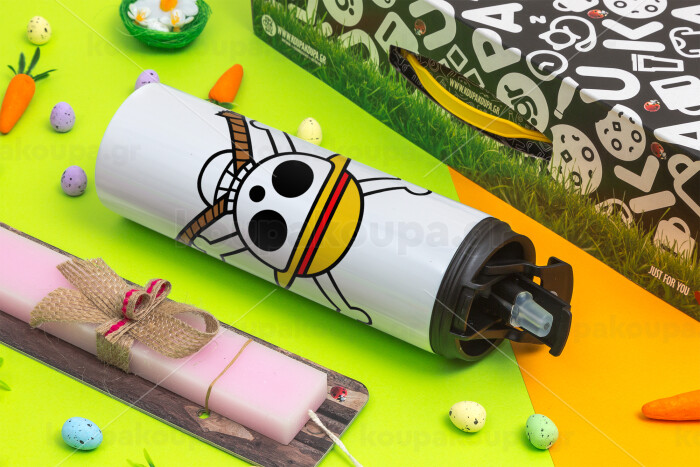 Onepiece skull, Πασχαλινή Λαμπάδα με Travel Tumbler θερμό με διπλό καπάκι (600ml, BPA free) & κερί αρωματικό πλακέ (30cm) (ΡΟΖ)