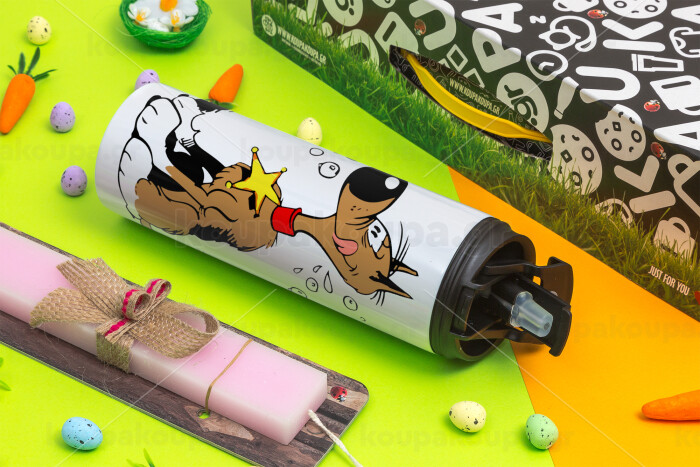 Rantanplan (Ρανταπλάν), Πασχαλινή Λαμπάδα με Travel Tumbler θερμό με διπλό καπάκι (600ml, BPA free) & κερί αρωματικό πλακέ (30cm) (ΡΟΖ)