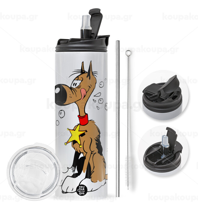 με 2 καπάκια για να επιλέξετε ανάμεσα σε απλό ποτήρι με καλαμάκι ή μετατροπή σε παγούρι θερμό με 2 τρόπους χρήσης (καλαμάκι ή στόμιο) με μεταλλικό επαναχρησιμοποιούμενο καλαμάκι. Απολαύστε το αγαπημένο σας ρόφημα κάθε στιγμή στο μοναδικό αυτό οικολογικό θερμό. Διατηρεί τη θερμοκρασία για αρκετές ώρες και είναι κατασκευασμένο από ανοξείδωτο ατσάλι. Κατάλληλο για ζεστά και κρύα ροφήματα. Συνοδεύεται από βουρτσάκι καθαρισμού για το καλαμάκι.