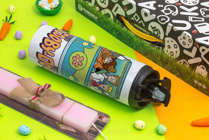 Scooby Doo car, Πασχαλινή Λαμπάδα με Travel Tumbler θερμό με διπλό καπάκι (600ml, BPA free) & κερί αρωματικό πλακέ (30cm) (ΡΟΖ)