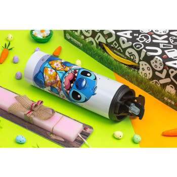 Stitch Ice cream, Πασχαλινή Λαμπάδα με Travel Tumbler θερμό με διπλό καπάκι (600ml, BPA free) & κερί αρωματικό πλακέ (30cm) (ΡΟΖ)