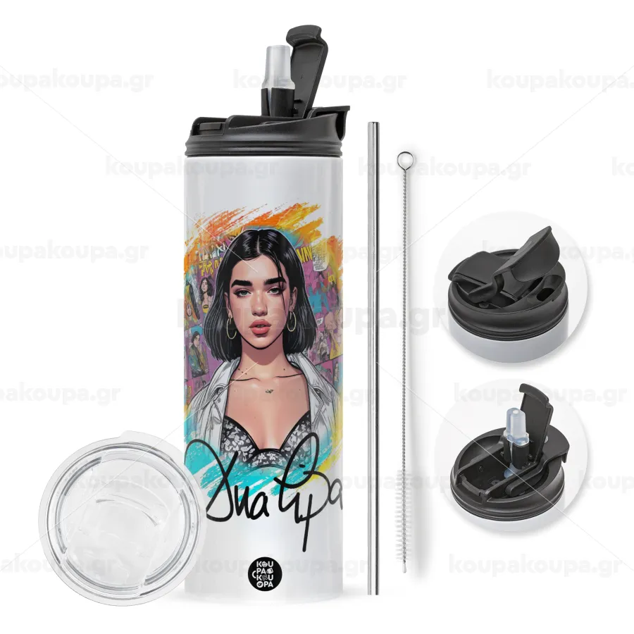 Dua lipa, Πασχαλινή Λαμπάδα με Travel Tumbler θερμό με διπλό καπάκι (600ml, BPA free) & κερί αρωματικό πλακέ (30cm) (ΡΟΖ)