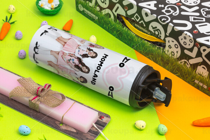 Momoland pink, Πασχαλινή Λαμπάδα με Travel Tumbler θερμό με διπλό καπάκι (600ml, BPA free) & κερί αρωματικό πλακέ (30cm) (ΡΟΖ)