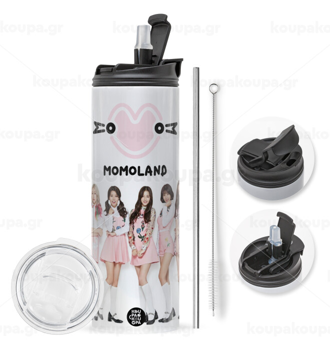 με 2 καπάκια για να επιλέξετε ανάμεσα σε απλό ποτήρι με καλαμάκι ή μετατροπή σε παγούρι θερμό με 2 τρόπους χρήσης (καλαμάκι ή στόμιο) με μεταλλικό επαναχρησιμοποιούμενο καλαμάκι. Απολαύστε το αγαπημένο σας ρόφημα κάθε στιγμή στο μοναδικό αυτό οικολογικό θερμό. Διατηρεί τη θερμοκρασία για αρκετές ώρες και είναι κατασκευασμένο από ανοξείδωτο ατσάλι. Κατάλληλο για ζεστά και κρύα ροφήματα. Συνοδεύεται από βουρτσάκι καθαρισμού για το καλαμάκι.