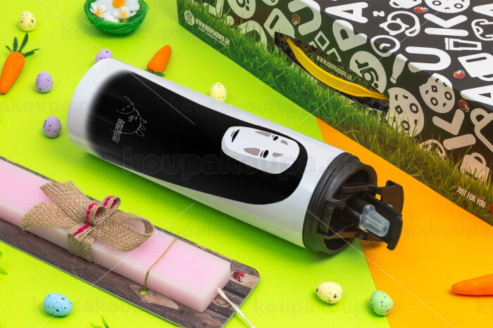 Spirited Away No Face, Πασχαλινή Λαμπάδα με Travel Tumbler θερμό με διπλό καπάκι (600ml, BPA free) & κερί αρωματικό πλακέ (30cm) (ΡΟΖ)