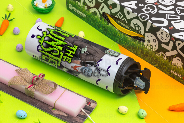The munsters, Πασχαλινή Λαμπάδα με Travel Tumbler θερμό με διπλό καπάκι (600ml, BPA free) & κερί αρωματικό πλακέ (30cm) (ΡΟΖ)