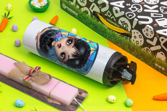 Wednesday big eyes, Πασχαλινή Λαμπάδα με Travel Tumbler θερμό με διπλό καπάκι (600ml, BPA free) & κερί αρωματικό πλακέ (30cm) (ΡΟΖ)