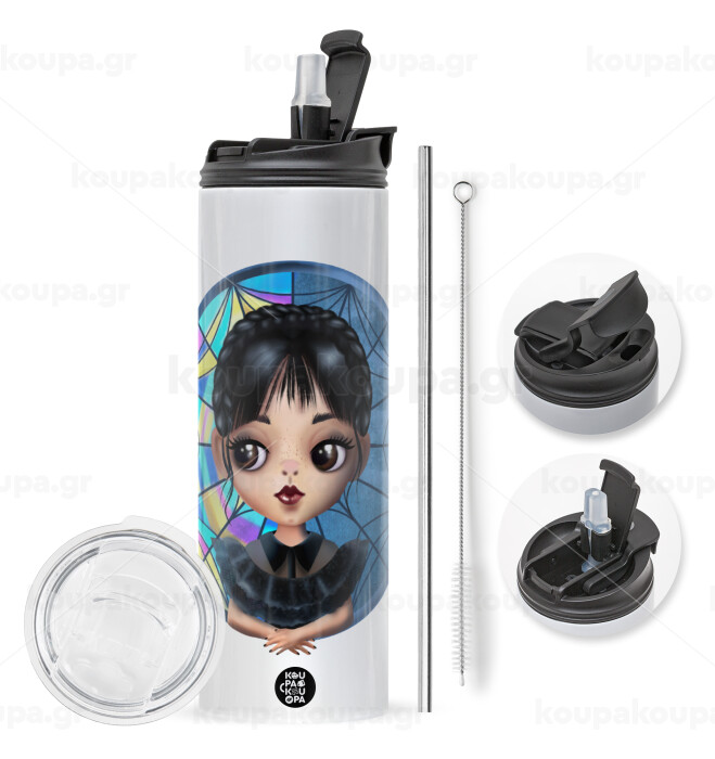 με 2 καπάκια για να επιλέξετε ανάμεσα σε απλό ποτήρι με καλαμάκι ή μετατροπή σε παγούρι θερμό με 2 τρόπους χρήσης (καλαμάκι ή στόμιο) με μεταλλικό επαναχρησιμοποιούμενο καλαμάκι. Απολαύστε το αγαπημένο σας ρόφημα κάθε στιγμή στο μοναδικό αυτό οικολογικό θερμό. Διατηρεί τη θερμοκρασία για αρκετές ώρες και είναι κατασκευασμένο από ανοξείδωτο ατσάλι. Κατάλληλο για ζεστά και κρύα ροφήματα. Συνοδεύεται από βουρτσάκι καθαρισμού για το καλαμάκι.