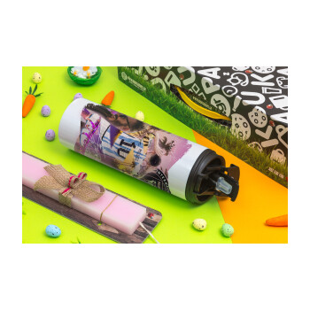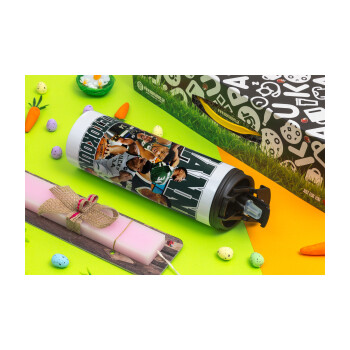 Πασχαλινή Λαμπάδα με Travel Tumbler θερμό με διπλό καπάκι (600ml, BPA free) & κερί αρωματικό πλακέ (30cm) (ΡΟΖ) με θέμα Αθλητικά