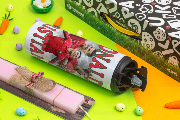 Κριστιάνο Ρονάλντο, Πασχαλινή Λαμπάδα με Travel Tumbler θερμό με διπλό καπάκι (600ml, BPA free) & κερί αρωματικό πλακέ (30cm) (ΡΟΖ)
