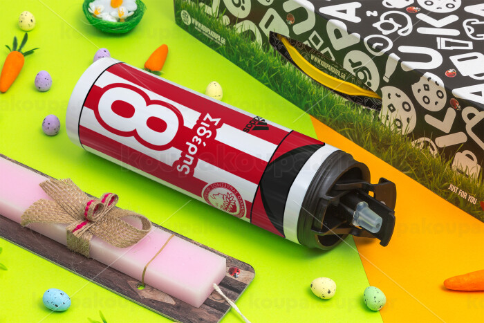 Ολυμπιακός εμφάνιση, Πασχαλινή Λαμπάδα με Travel Tumbler θερμό με διπλό καπάκι (600ml, BPA free) & κερί αρωματικό πλακέ (30cm) (ΡΟΖ)