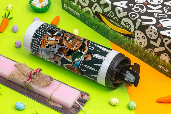 Giannis Antetokounmpo, Πασχαλινή Λαμπάδα με Travel Tumbler θερμό με διπλό καπάκι (600ml, BPA free) & κερί αρωματικό πλακέ (30cm) (ΡΟΖ)
