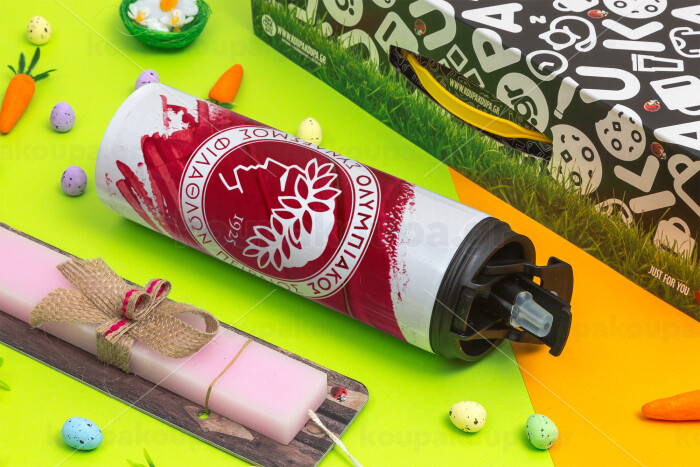 Olympiacos F.C., Πασχαλινή Λαμπάδα με Travel Tumbler θερμό με διπλό καπάκι (600ml, BPA free) & κερί αρωματικό πλακέ (30cm) (ΡΟΖ)