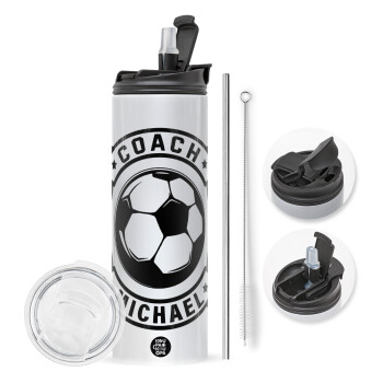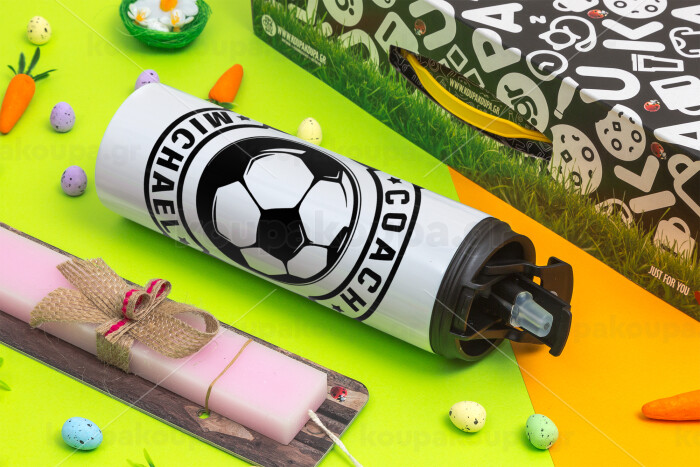 Soccer coach, Πασχαλινή Λαμπάδα με Travel Tumbler θερμό με διπλό καπάκι (600ml, BPA free) & κερί αρωματικό πλακέ (30cm) (ΡΟΖ)