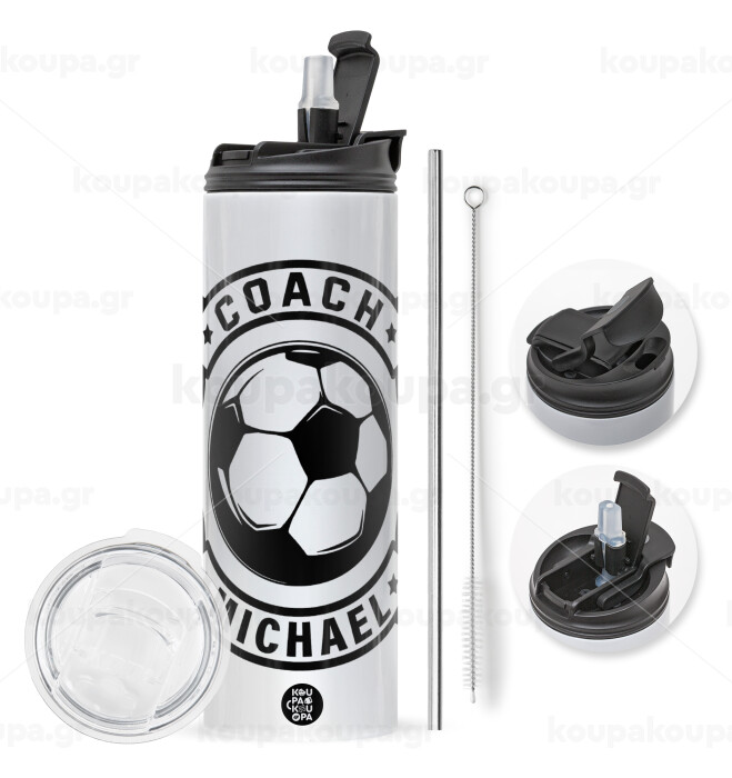 Soccer coach, Πασχαλινή Λαμπάδα με Travel Tumbler θερμό με διπλό καπάκι (600ml, BPA free) & κερί αρωματικό πλακέ (30cm) (ΡΟΖ)
