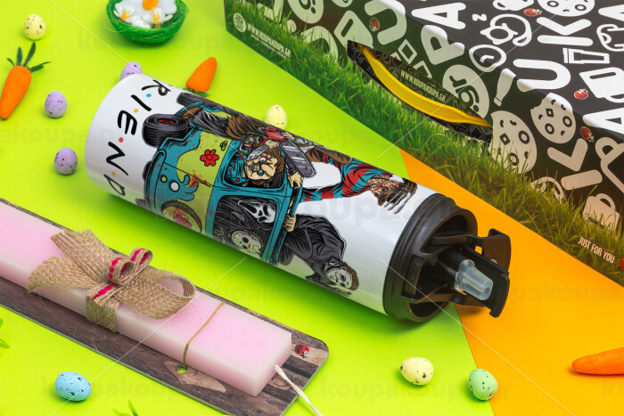 Halloween Friends Scooby Doo, Πασχαλινή Λαμπάδα με Travel Tumbler θερμό με διπλό καπάκι (600ml, BPA free) & κερί αρωματικό πλακέ (30cm) (ΡΟΖ)