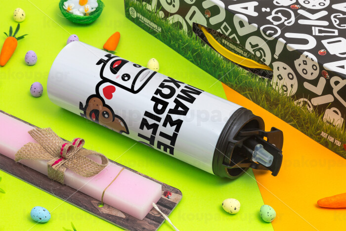 Είμαστε αχώριστοι, Πασχαλινή Λαμπάδα με Travel Tumbler θερμό με διπλό καπάκι (600ml, BPA free) & κερί αρωματικό πλακέ (30cm) (ΡΟΖ)