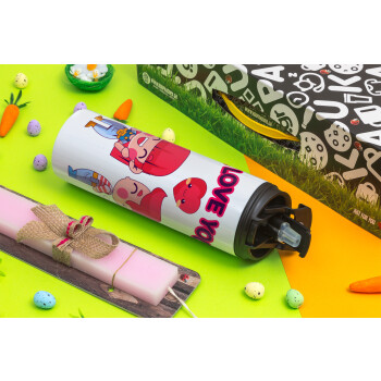 Couple, I love you, Πασχαλινή Λαμπάδα με Travel Tumbler θερμό με διπλό καπάκι (600ml, BPA free) & κερί αρωματικό πλακέ (30cm) (ΡΟΖ)